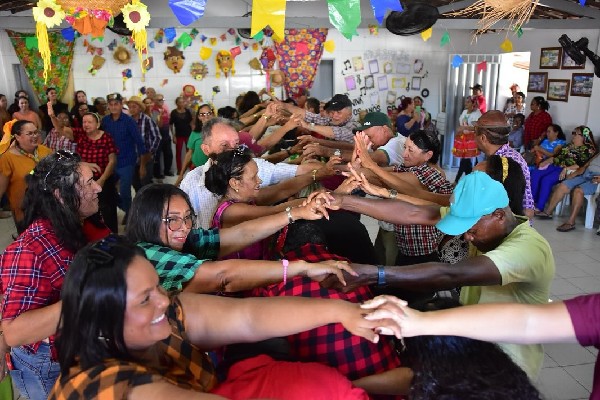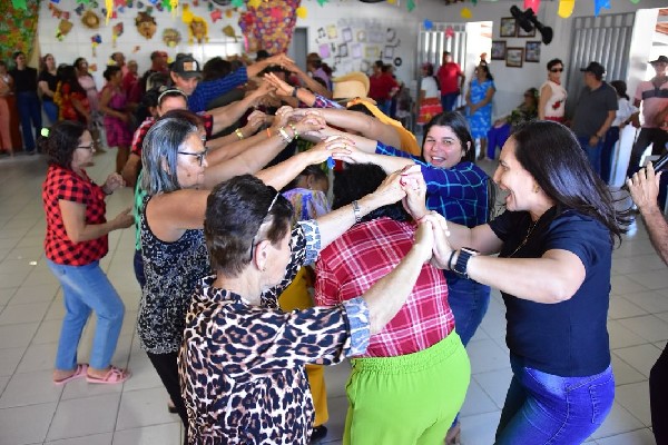 A festa foi marcada por sorrisos, danças, comidas típicas e momentos de afeto que reforçam os laços e promovem o envelhecimento ativo e saudável.