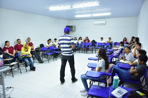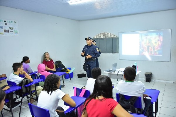 ?????A atividade aconteceu no Centro Educacional José Maria de Aguiar Filho, com estudantes do 6º e 7º ano, que participaram de uma palestra sobre bullying e de dinâmicas interativas voltadas à reflexão e ao diálogo.