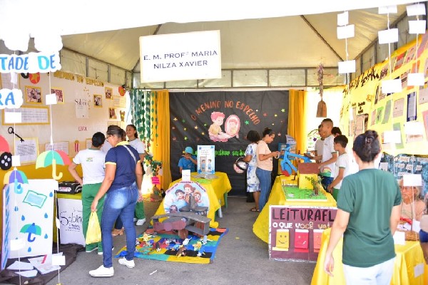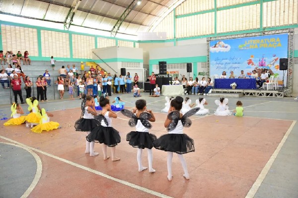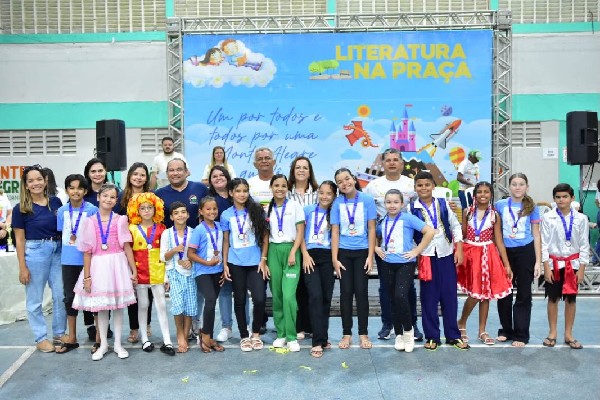 Nesta sexta-feira (05), a programação aconteceu na Praça Pedro Alves e no Ginásio Poliesportivo Osmundo Faria, reunindo estudantes da rede municipal em um dia especial de contação de histórias, apresentações e exposições.