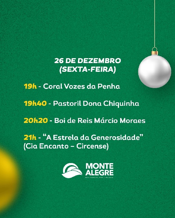 Vem viver esse sonho com a gente. Monte Alegre te espera para celebrar o Natal do jeito mais bonito: juntos.