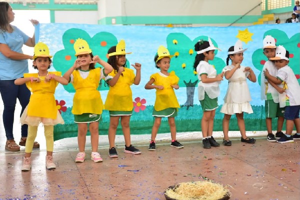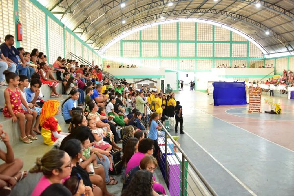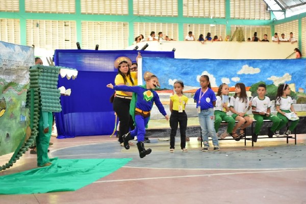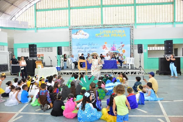 Nesta sexta-feira (05), a programação aconteceu na Praça Pedro Alves e no Ginásio Poliesportivo Osmundo Faria, reunindo estudantes da rede municipal em um dia especial de contação de histórias, apresentações e exposições.